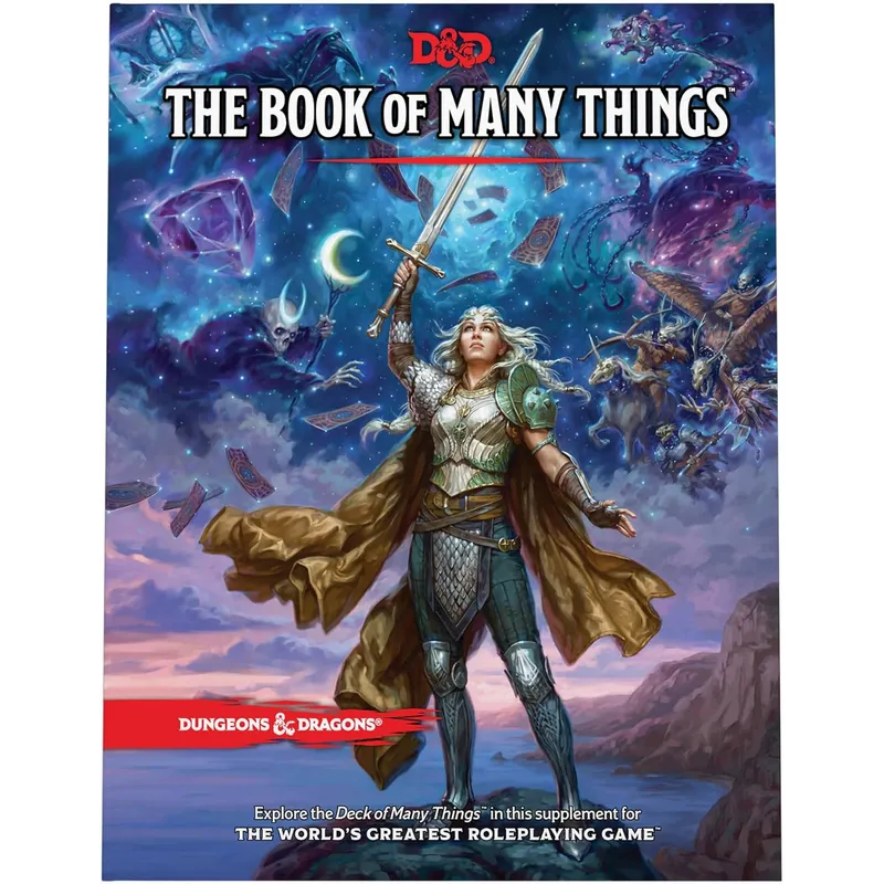 The Book of Many Things - Ova prateća knjiga na 192. strane osvetljava tajne špila i pruža sve potrebne informacije za igrače. To uključuje savete o korišćenju špila, lokacije avantura, nova čudovišta, opcije likova, magične predmete...