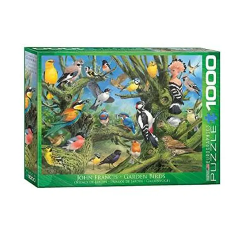 Puzzle Garden Birds by Joahn Francis je slagalica od 1000 sa kojom ćete uživati u pogledu na vrt prepun raznih vrsta ptica. Na slici se nalaze šarenoliki primerci vrabaca, detlića i drugih vrsta. Ukoliko ste ljubitelj ptica i volite da se zabavljate i razvijate svoje veštine slažući puzle, ovo je prava slagalica za Vas!