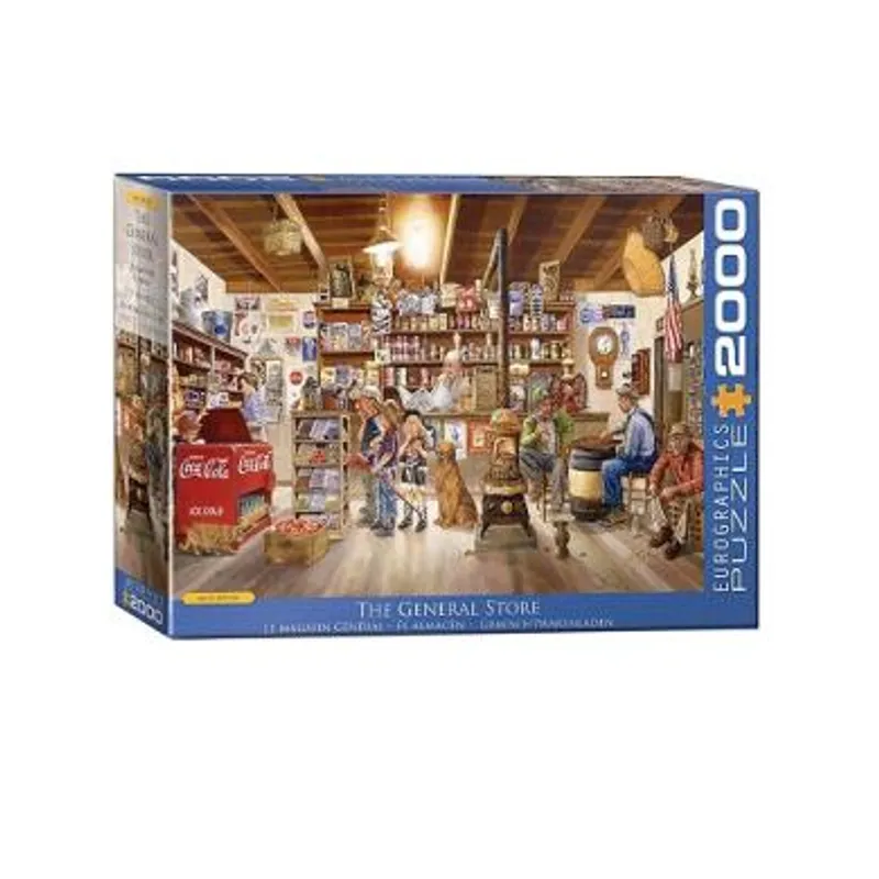 Puzzle The General Store by Les Ray je slagalica od 2000 na kojoj je ilustrovana jedna mala prodavnica puna različitih kupaca. Ukoliko ste ljubitelj šarenih boja i različitih oblika i volite da se zabavljate i razvijate svoje veštine opažanja slažući puzle, ovo je prava slagalica za Vas!